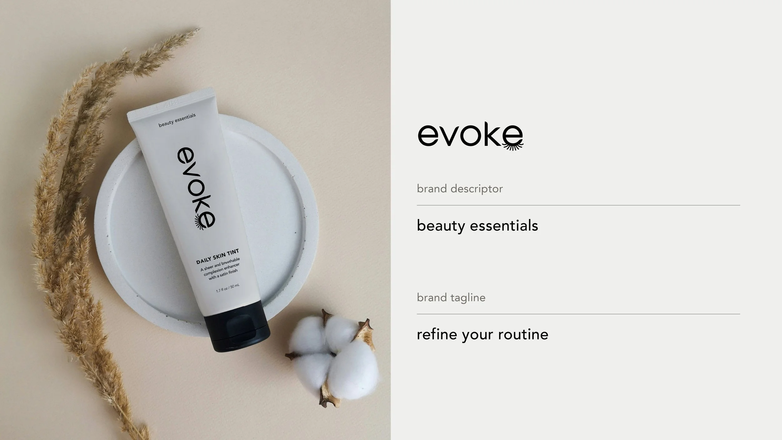 Strategy: Positioned Evoke as a modern, minimalist beauty line focused on essentials rather than excess. Defined brand values around ingredient-conscious formulas, simplicity, and refinement.