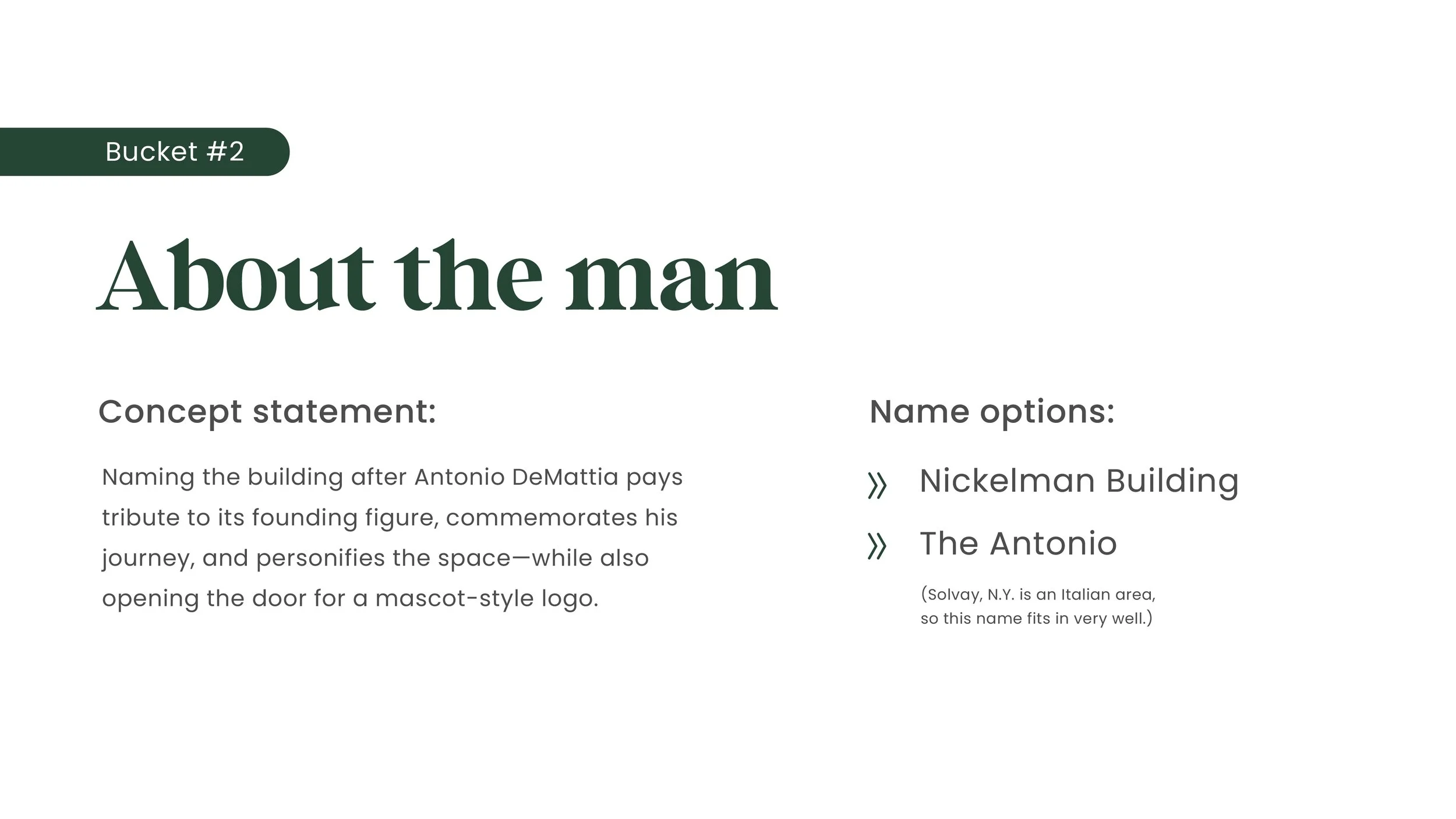 A historic property in the village of Solvay was preparing for a major transformation—moving from vacancy and disrepair into a revitalized mixed-use building. As demolition and construction began, the project needed a name and identity that would both honor the town’s industrial roots and position the property as a desirable, central place for new tenants and community activity.